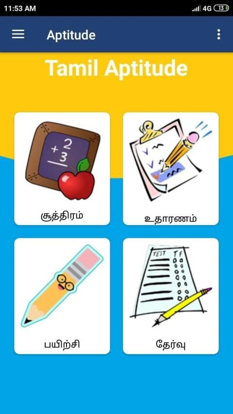 Tamil Aptitude berisi informasi dasar & metode mudah untuk menyelesaikan bakat dalam bahasa tamil untuk dipahami dengan cara mudah