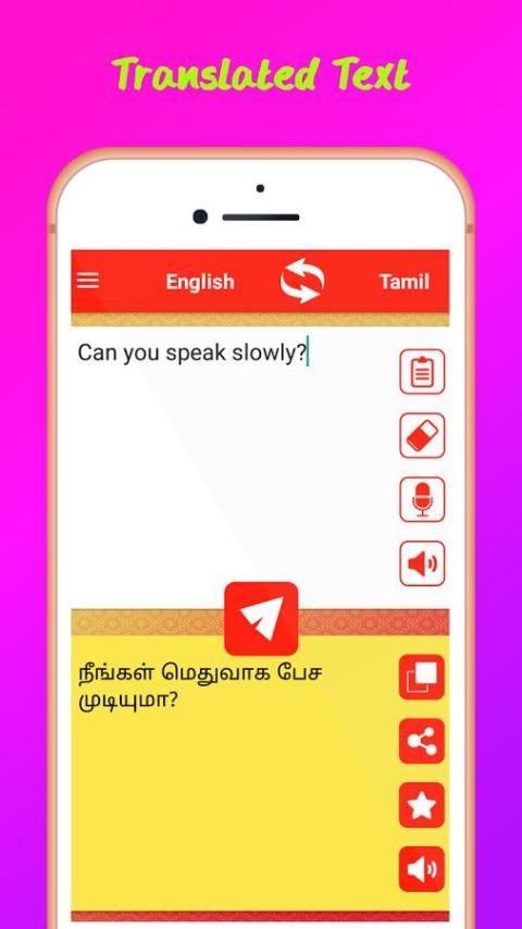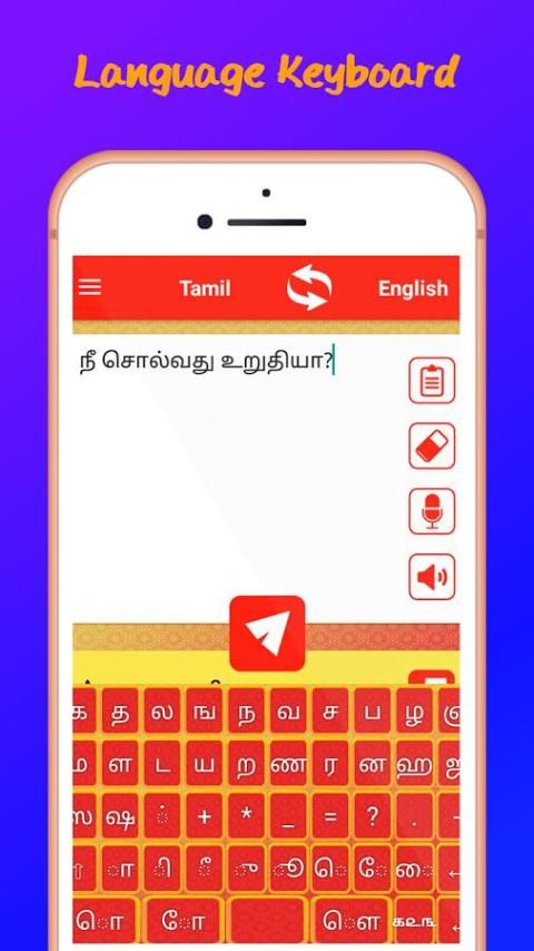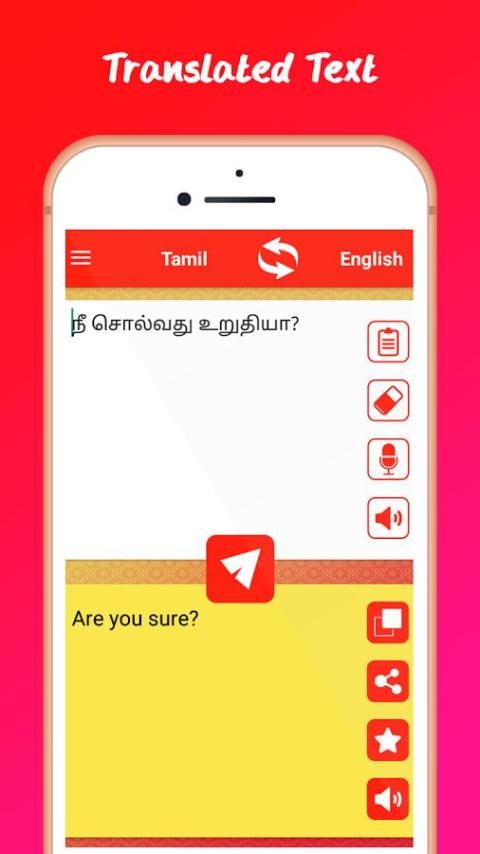 Tamil English Translator membantu untuk menerjemahkan teks, kata atau kalimat dari Tamil ke Bahasa Inggris atau dari bahasa Inggris ke bahasa Tamil hanya dalam hitungan detik.