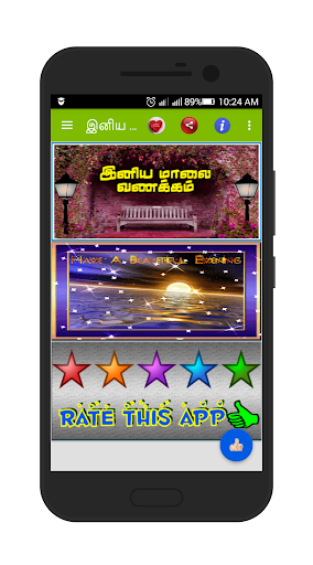 This Tamil Image app is a single point of utility for sending beautiful good evening images with splendid text messages in Tamil to your friends at the dawn and dusk of the day to convey your greetings to them. Stop wandering over the internet for messages and use this app to covey your emotions within seconds.This Image app is a combination of good afternoon and good evening images in Tamil language. This app has Instant share with great UI navigability.