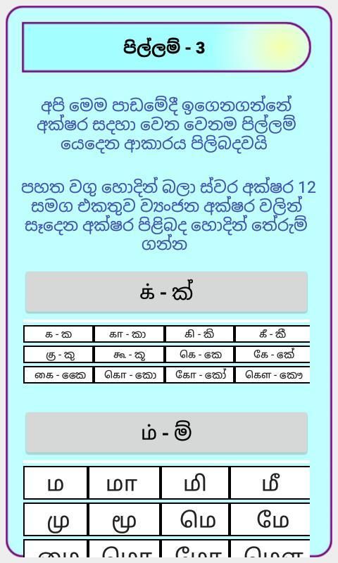 App ini menawarkan pelajaran gratis untuk belajar Tamil seperti Kata Sifat Kata Keterangan Artikel Feminine Negasi Kata Benda Nomor Frase Plural Preposisi Kata ganti Pertanyaan Verbs dan Kosakata