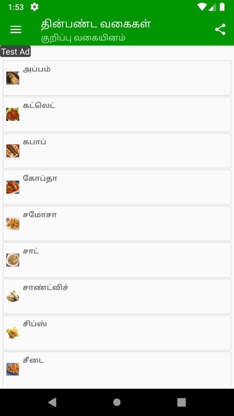 Semua resep yang di Tamil (தமிழ்). Kami memiliki lebih dari 200 + varietas yang berbeda dari makanan ringan resep (கார தின்பண்டங்கள் சமையல் குறிப்புகள்) yang mencakup
