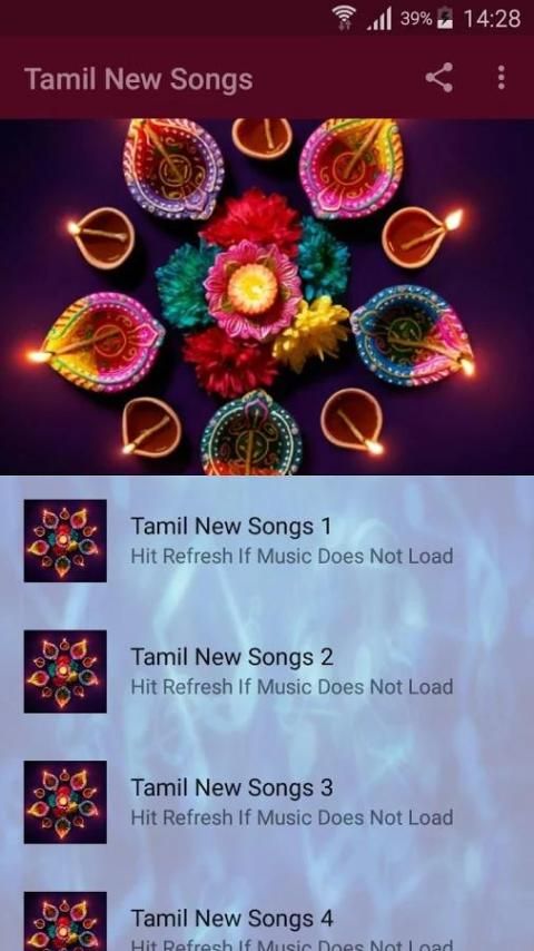 Tamil Lagu Baru sangat mudah digunakan cukup tekan tombol refresh dan memberikan beberapa detik untuk memuat musik terbaru dari server kami.