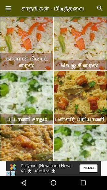 Tamil Samayal Ragam Beras App menyediakan Anda dengan berbagai macam vegetarian lezat dan non-vegetarian Variety Rice bahwa Anda dapat menikmati dengan keluarga Anda.