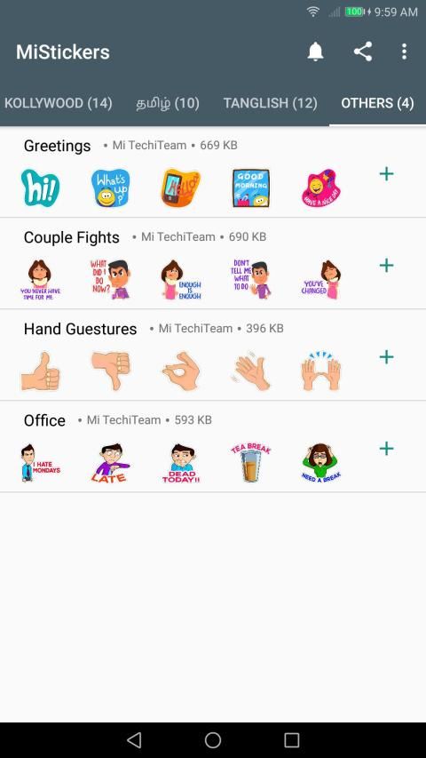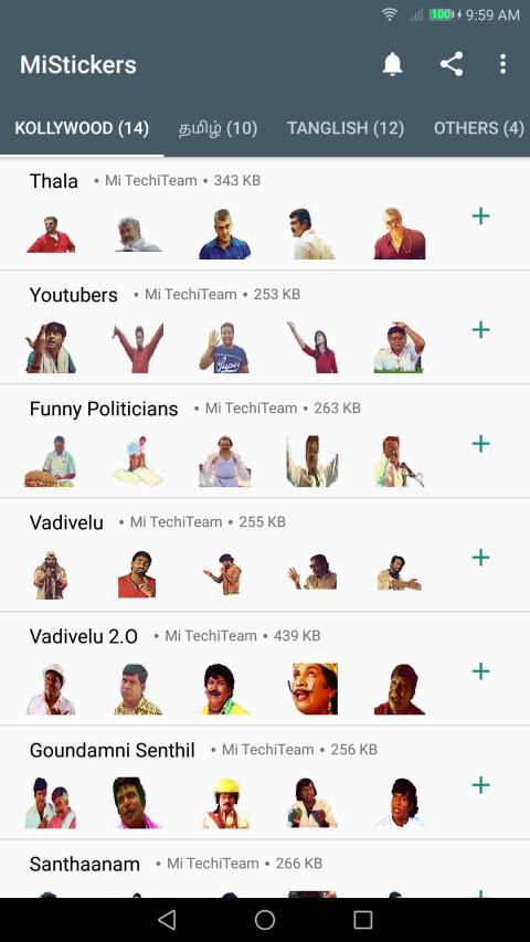 1000+ including Vadivelu, Santhanam, Goundamani and more tamil stickers. All in one app.