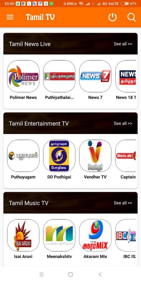 Ada banyak saluran tv lokal di Tamilnadu dan beberapa saluran di aplikasi kami
