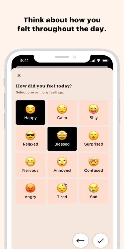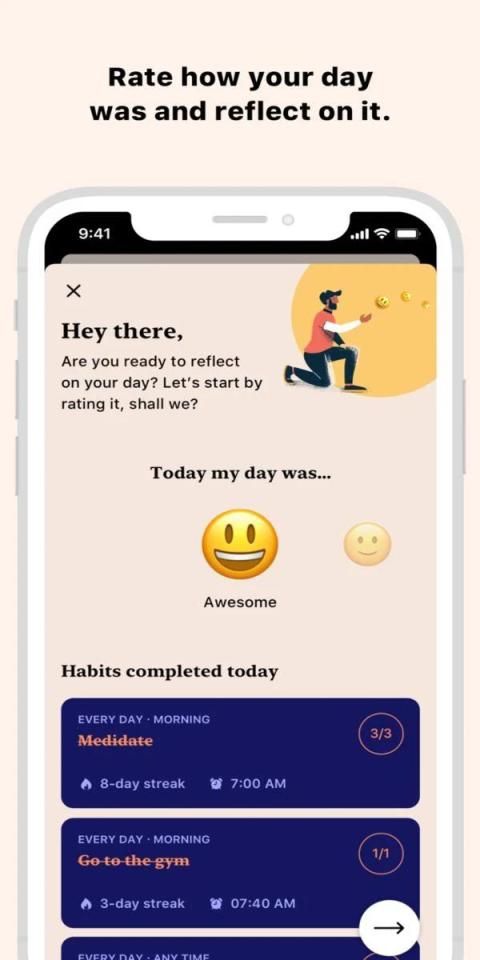 Rutinitas Anda memiliki dampak besar pada perasaan Anda. Itu sebabnya kami telah mengintegrasikan pelacakan suasana hati dan penjurnalan dengan pelacakan kebiasaan. Pada akhir setiap hari, luangkan waktu sejenak dan renungkan dengan menilai bagaimana itu, apa yang membuatnya seperti itu dan mengapa.