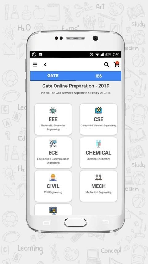 Mechanical Engineering(ME), Computer Science Engineering(CSE), Civil Engineering(CE), Chemical Engineering(Chem), Electronics and Communication Engineering(ECE), Instrumentation Engineering(IE). The well tested app gives aspirants a competitive edge through: