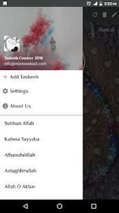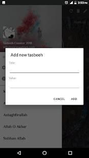 • You can add new tasbeeh to your counter and a list of tasbeehat will appear, allowing you to keep a track of your regular prayers.