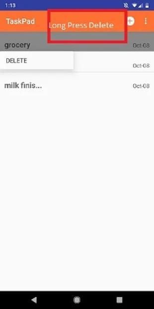 Even you can see the delete option on long press of your task and on single time clicking