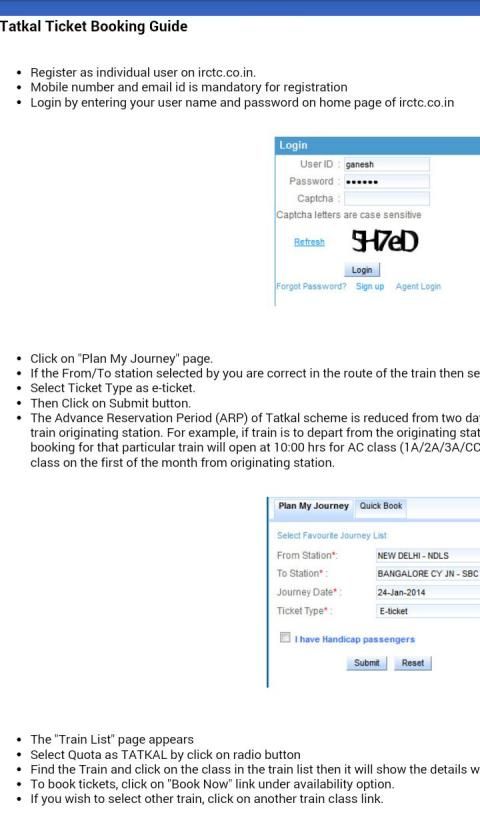 Tatkal Ticket Booking
