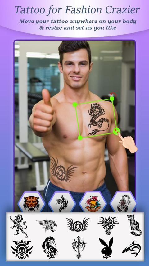 • Choose one or more tattoos and place them on your picture until you like the look.