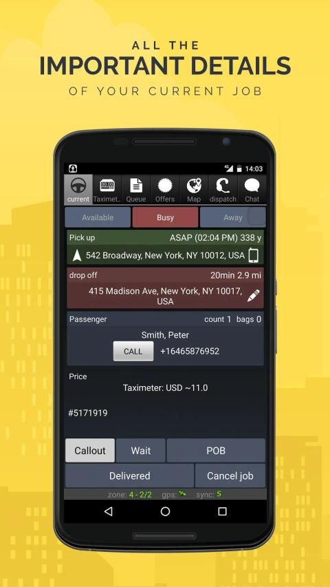 Dengan TaxiCaller, Anda dapat menggunakan ponsel cerdas atau tablet Anda untuk menerima pemesanan dari perusahaan taksi berlisensi di lebih dari 60 negara di jaringan TaxiCaller!