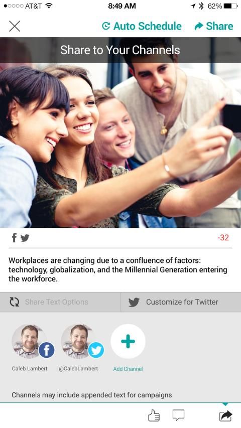 • Share approved content directly to your social networks from your smartphone