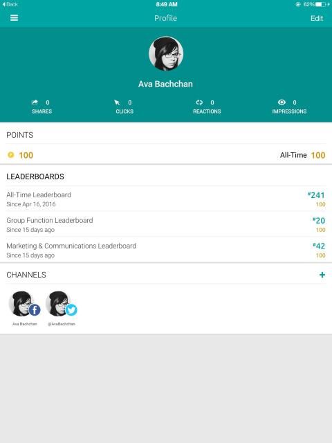• Review your sharing performance, compete on the leaderboard of most engaged users, submit photos and links, and invite your colleagues