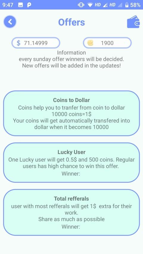 Ini akan memberi Anda koin, yang dapat ditransfer ke dolar.