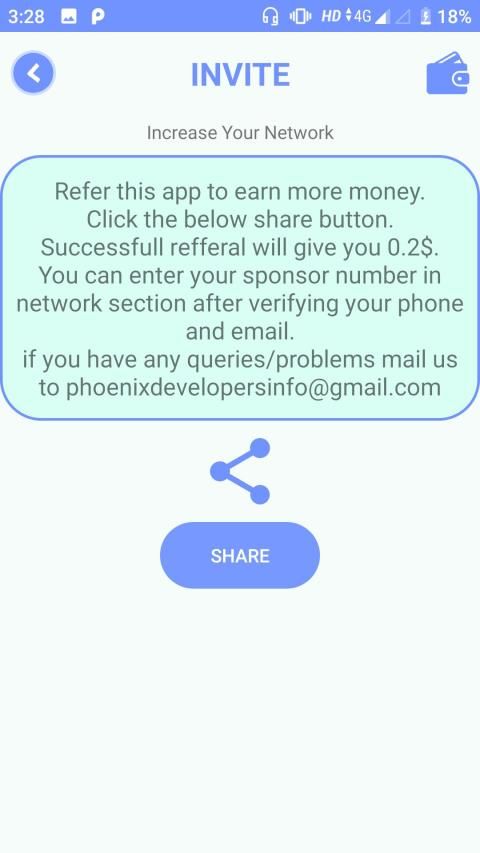 This is a MLM application in which you can earn money from your refferals