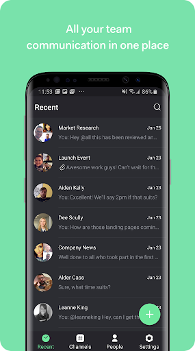 - Chat Channels: Berkomunikasi dengan tim Anda di saluran, tim, proyek, Proyek, klien - atau pengelompokan apa pun yang relevan dengan bisnis Anda.