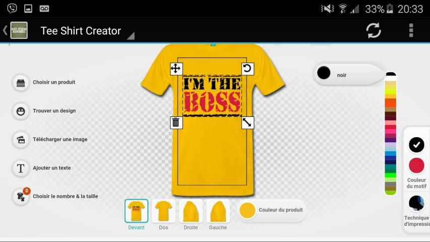 Personnalisez vos fringues et adoptez votre propre style! Créez et composez facilement vos tee shirts, sweats-shirts, vestes, accessoires etc... avec une quantité infinie de motifs, de logos, d'images et de textes de notre bibliothèque (toutes les thématiques: humour, sexy, musique, animaux, sports, symboles...) ou de votre propre création. Très simple et ludique pour un rendu du meilleur effet!