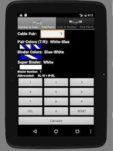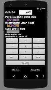 You can type in a cable pair number and it will display the pair color, binder color, binder group, super binder group, and the color abbreviation that this pair would be written in.