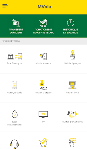 - MVOLA untuk semua operasi MVOLA Anda seperti transfer uang, pembayaran ...,