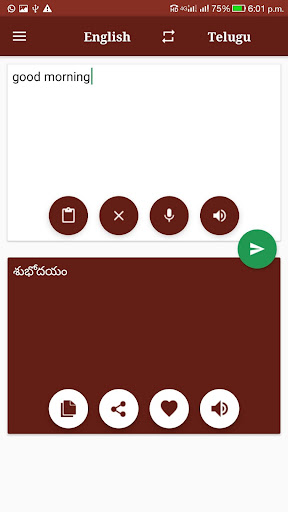 * Aplikasi berfungsiDalam kedua mode, Telugu untuk penerjemah bahasa Inggris atau bahasa Inggris ke Telugu penerjemah.