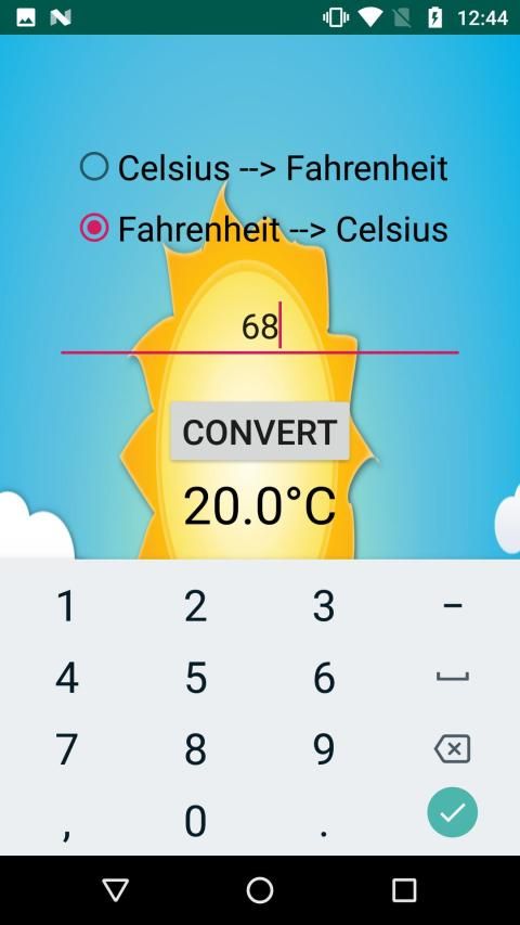 Aplikasi ini akan secara mulus mengkonversi Fahrenheit ke Celsius dan sebaliknya.