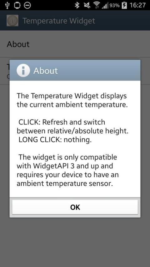 Widget ini membutuhkan perangkat Android dipasangkan untuk memiliki sensor suhu lingkungan.