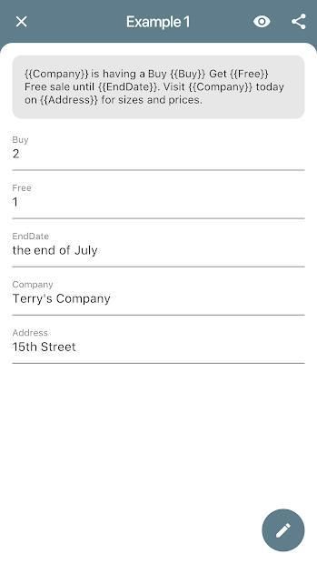 Template Cat is an app for you to copy your frequently used text. It supports variables so that you can create your own templates and copy them.