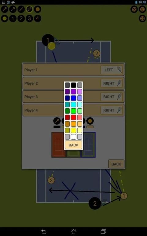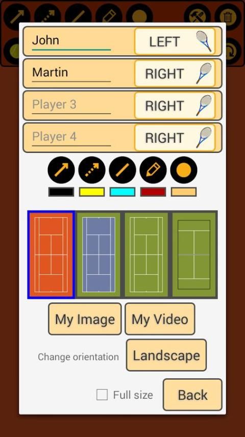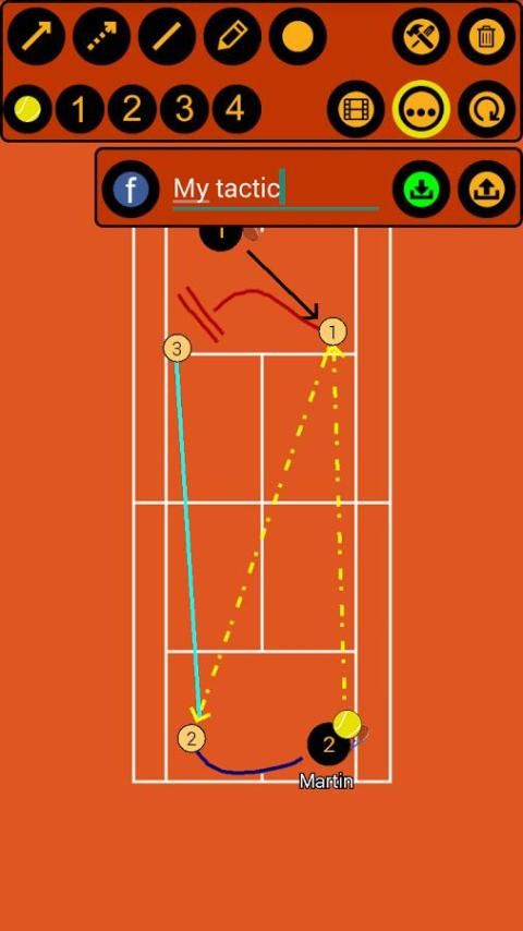 Tennis Tactic Board, allows you to create your own tactics for every match situation. You can use from one to four players, you can change players favourite hand for more percise tactic. Tennis Tactic Board provides you four tools! Circle with number of circle inside! Sipmle Line, Arrow and Dotted arrow! Everything you need to explain your tactic!