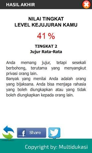 Tes Kejujuran adalah tes yang bertujuan untuk mengetahui tingkat kejujuran Anda.