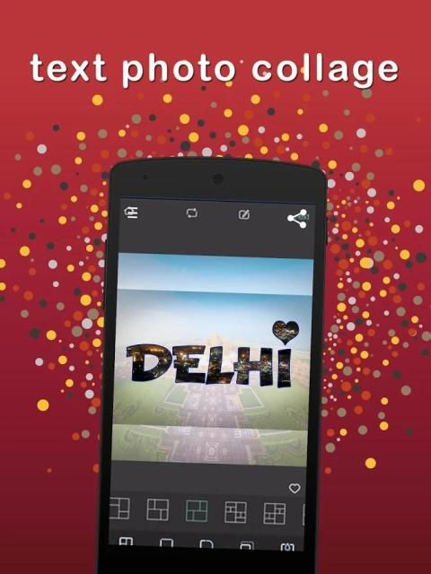 - Teks Photo Collage Editor akan membantu Anda untuk menguasai menciptakan Teks Shape foto terkait kolase. Gunakan ini foto pembuat jaringan aplikasi untuk membuat efek mengagumkan pada indah kolase foto. Ini juga merupakan editor foto yang cukup, di samping ini; Teks Foto Kolase Maker adalah alat jahitan pic termudah di luar sana!