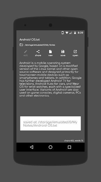 Buat, simpan, dan edit file teks di direktori penyimpanan eksternal perangkat Anda.