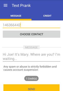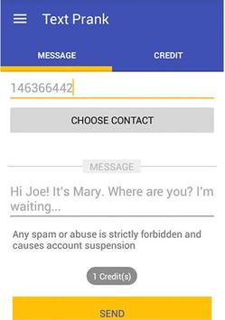 Text Prank is still in Beta and is under development so If you find a bug or if sending messages doesn't go well please let us know (and give us time to fix it) before giving us a bad review.