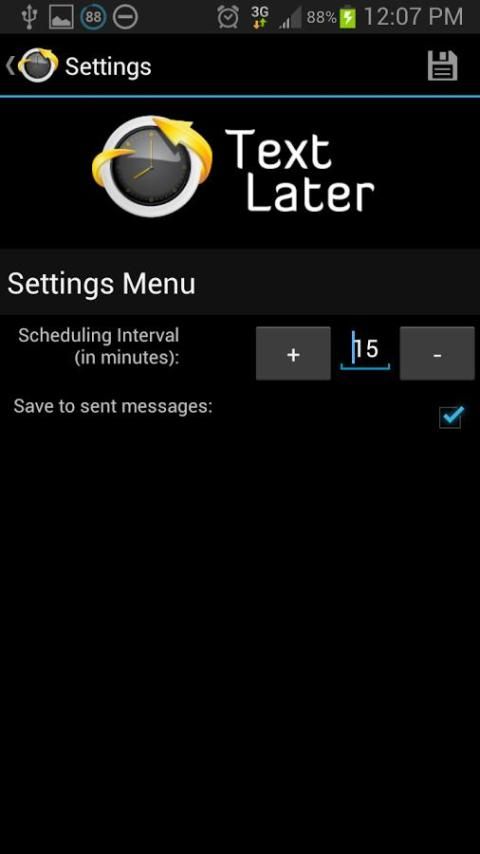 Teks Kemudian adalah solusi sederhana untuk mengirim pesan SMS di kemudian hari. Perlu mengirim pengingat tentang pertemuan? Atau mungkin Anda sedikit pelupa tentang mengirimkan pesan Selamat Ulang Tahun kepada teman dan keluarga. Teks Kemudian memungkinkan Anda untuk mengirim pesan SMS ke kontak, setiap tanggal atau waktu yang Anda pilih. Pastikan Anda memiliki rencana SMS melalui operator Anda, sebagai Teks Kemudian mengirimkan pesan SMS standar dan Anda bertanggung jawab untuk biaya dari operator Anda mengenai pengiriman pesan SMS.