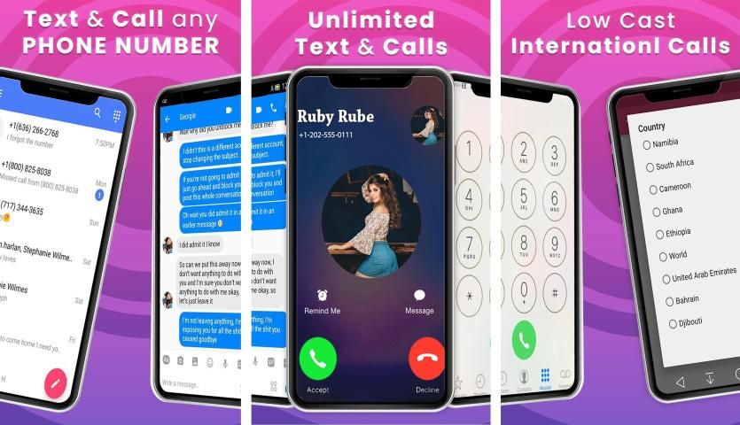 Nomor telepon AS atau Kanada pribadi yang unik dengan Teks dan panggilan Menyenangkan. Fungsi yang mudah untuk mengubah perangkat Anda seperti tab menjadi ponsel Android. Dapatkan nomor kedua dengan mudah tanpa kartu sim lainnya, pilih satu nomor untuk pekerjaan kantor dan satu lagi untuk keluarga.