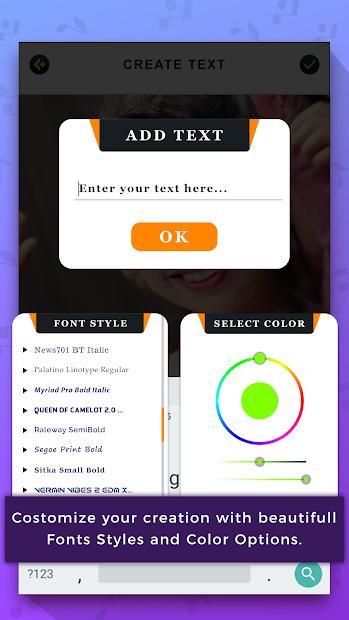Our text on video feature provides video editor which allows edit video by adding text with cool fonts, animations, colors and music. Just make video of your moments and edit video in your own way to share all of your friends. It combines the power of words with videos to help you express, communicate, and share your moments in a much better and creative way.