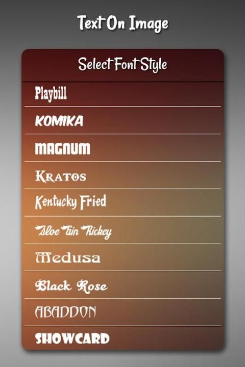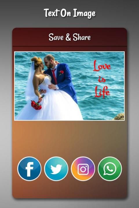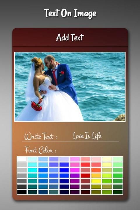 Menulis perasaan Anda dan kutipan gambar dengan Teks Pada Foto - Teks Selama Photo. Teks Pada Foto - teks Photo Selama memiliki banyak fitur unik seperti itu memiliki mendukung sejumlah besar gaya teks dan warna font. Anda dapat menulis teks dengan pensil warna-warni atau sikat dan teks dengan bayangan.