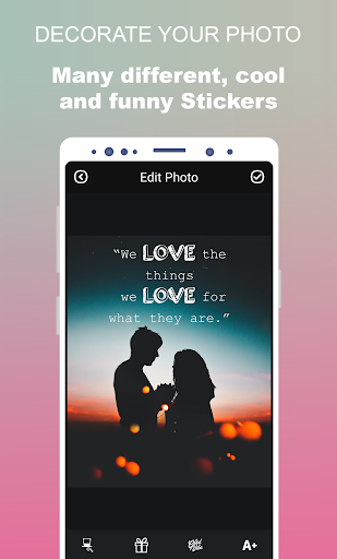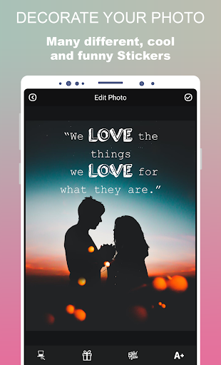 Jika Anda mencari cara sederhana untuk menambahkan teks ke gambar, kata-kata pada gambar atau Anda suka membaca kutipan cinta di jejaring sosial dan ingin menambahkan kutipan ke foto, unduh aplikasi edit teks foto gratis kami. Semua dalam satu aplikasi, Anda memegang teks Sisipan terbaik di foto hari ini.