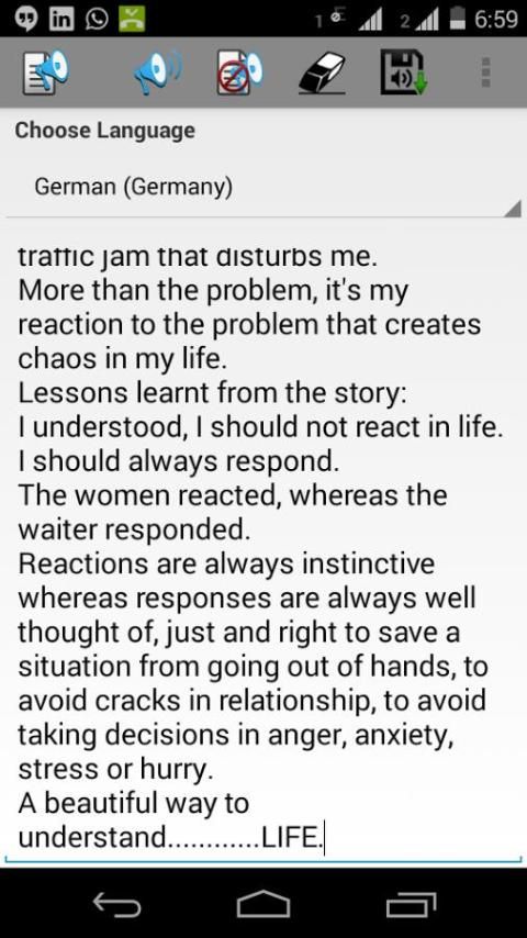 Biarkan ponsel pintar Anda melakukan semua yang bicara! Text To Speech atau Text To Voice adalah aplikasi menyenangkan yang memungkinkan teks berbicara telepon Anda untuk Anda. Anda dapat mengontrol kecepatan bahwa teks ditentukan dan dengan nada suara yang memahaminya. Text To Speech atau Text To Voice dibentuk sebagai aplikasi yang menyenangkan dan menarik. Sebuah sisi baru dari aplikasi dengan fitur baru seperti Text-To-Speech dan Text-To-Voice baru saja diluncurkan. Instalasi aplikasi akan ini akan membantu Anda dalam banyak cara. Mudah dan mudah digunakan, Text-To-Speech dan Text-To-Voice App dengan Mengikuti