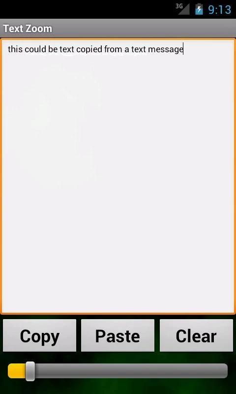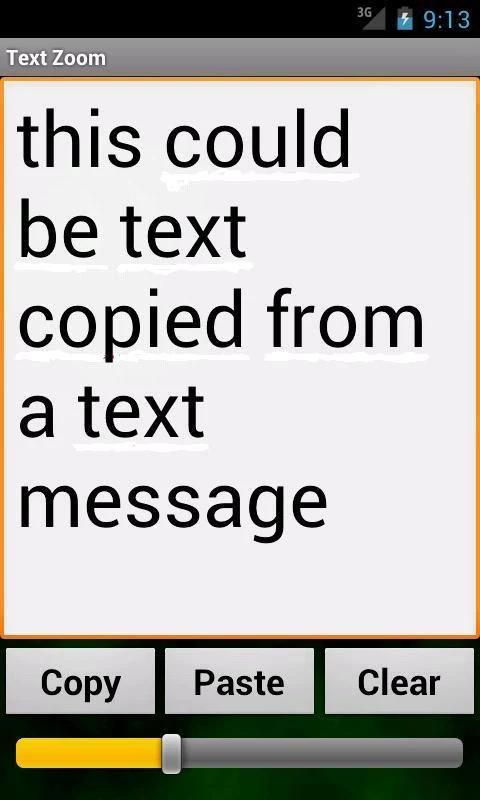 Ini besar ketika Anda mendapatkan pesan teks atau email - hanya menyalin pesan teks atau email dan kemudian paste ke Text Zoom. Membuat font yang lebih besar dan sekarang itu benar-benar mudah dibaca!