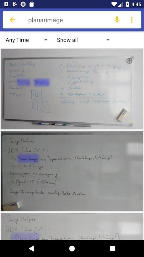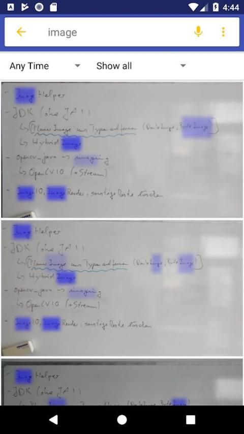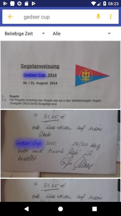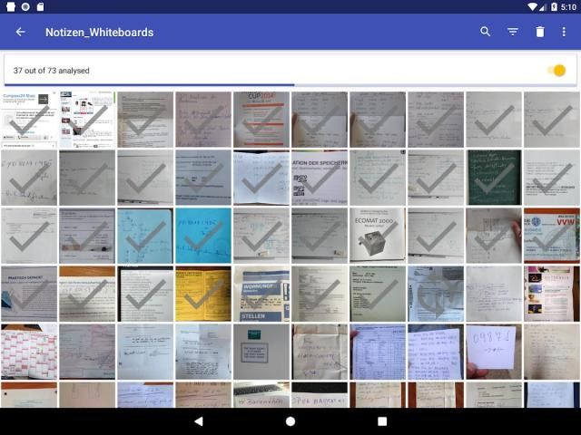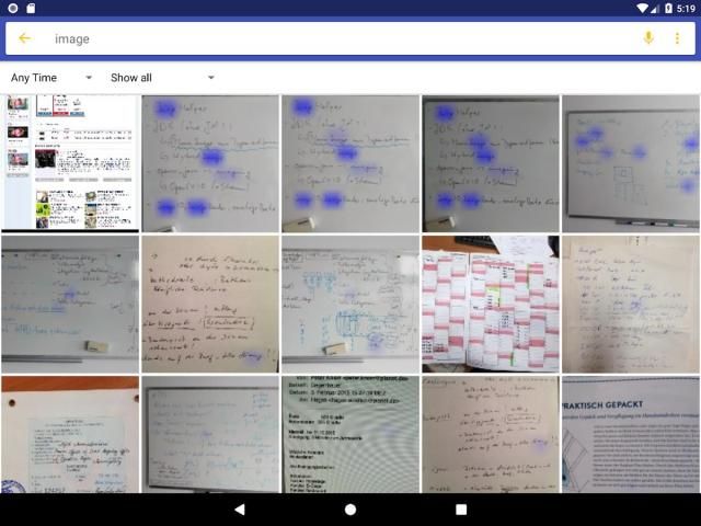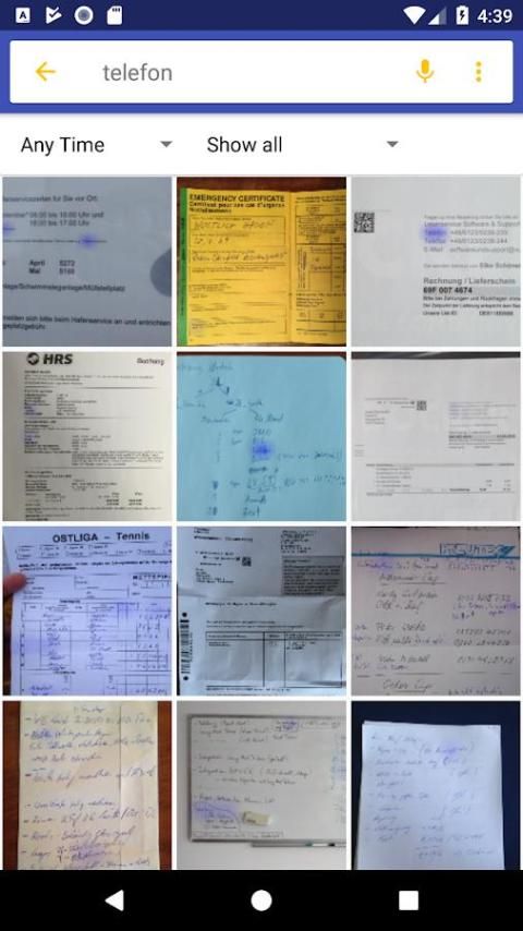 Isi dari semua gambar Anda dapat dicari sebagai teks penuh. Pengolahan lengkap dan Text-search berjalan 100% di perangkat lokal Anda dan karena itu melindungi privasi Anda.