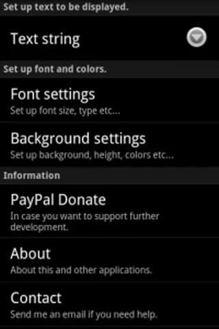 Widget minimalis yang sangat sederhana, yang menampilkan teks di layar awal Android Anda. Hal ini memungkinkan beberapa contoh dari widget dan memiliki kemungkinan macam pengaturan. Versi ini juga termasuk Tasker / Lokal plug-in, yang bahkan menjadi alat yang lebih kuat dari sebelumnya.