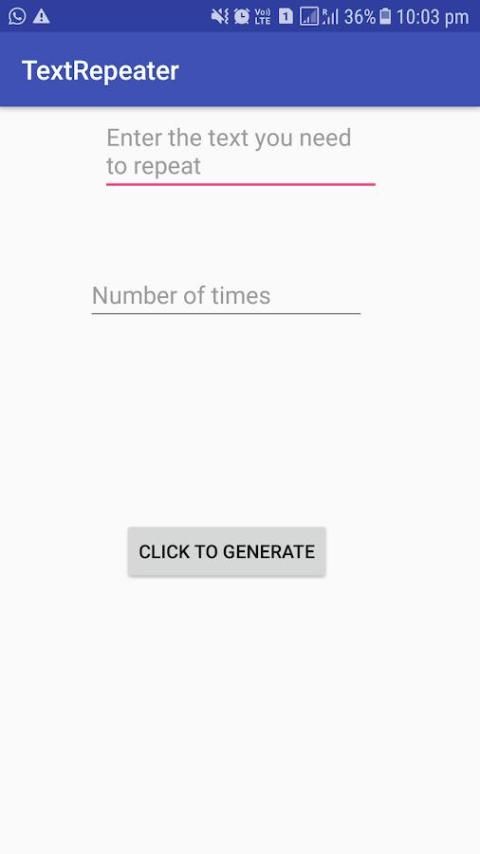 Kadang-kadang kita perlu mengetikkan teks yang sama lebih dari 10 kali. Sulit bagi kita untuk mengetik setiap kali atau menyalin. Aplikasi ini membantu untuk membuat karya ini sederhana. Anda hanya perlu memasukkan teks sekali dan ketik jumlah waktu yang Anda butuhkan untuk mengulang, teks akan mengulangi untuk jumlah waktu tertentu.