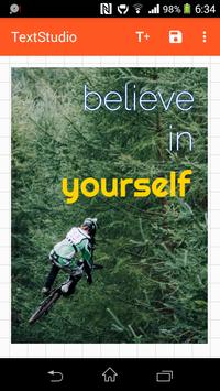 Kami membuat sebuah aplikasi untuk memudahkan Anda dalam menambahkan teks atau cerita pada foto. TextStudio, memudahkan Anda dalam menambah teks pada foto, tanpa repot dan GRATIS. Gunakan TextStudio untuk menambah teks pada foto, memberikan efek teks seperti mengatur ukuran teks, rotasi, menambahkan shadow, stroke, mengatur warna dan banyak lagi. Foto dapat diambil dengan mudah menggunakan kamera atau ambil di galeri.