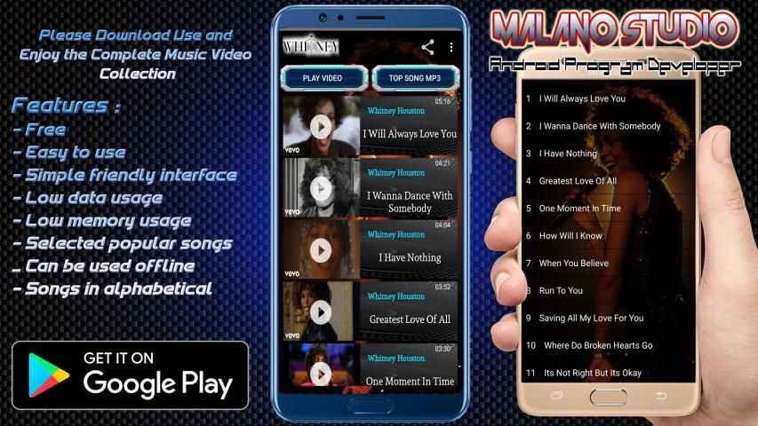 Yang terbaik dari semuanya, Anda dapat mengakses semua ini secara gratis dengan Aplikasi Lagu Offline Lagu Whitney Houston Terbaik ini