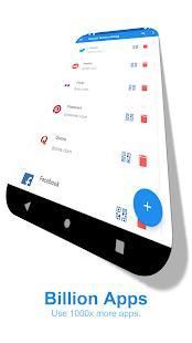 Instead of installing entire app The Billion App will store only the URL of the apps website and redirect you to that website with just one click. As Example If we have URL stored in Database with size of 1 Byte, and then we can store and use 1000000000 Apps in your phone with 1GB storage. Thus with the help of The Billion App we can use 1000x (Thousand times more) apps in the phone.