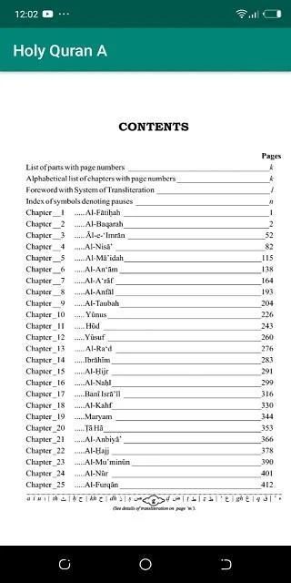 * Surah Index (Surah list).