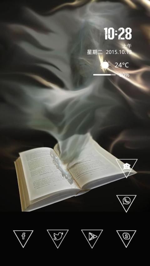 Tema wallpaper ini buku sihir. Latar belakang wallpaper berwarna hitam, sebuah buku di pusat wallpaper, terbuka, seolah-olah dengan sihir, di mana asap. Sangat keren.