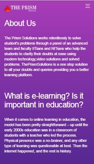 ThePrismSolutions works relentlessly to solve student's problems through a panel of an advanced team and faculty IITians and NITians who help the students to clarify their doubts at ease using modern technology , video solutions and solves problems. ThePrismSolutions is one's stop solution to all your doubts and queries providing you a better learning platform.
