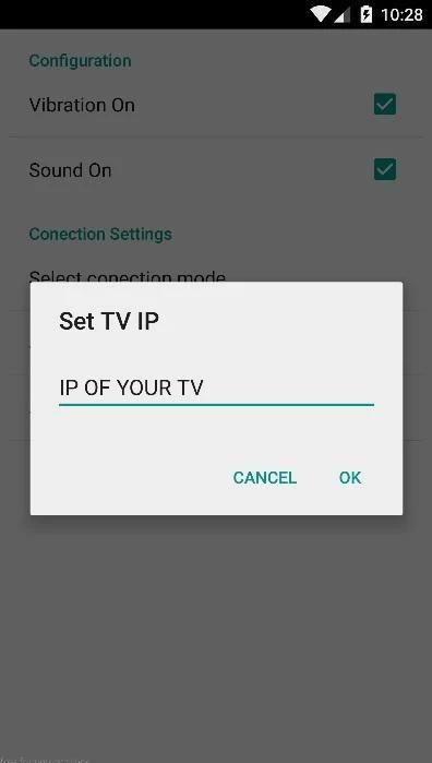 • Lance aplikasi kami "The Remote Control Semua TV" dan Menulis parameter dalam IP Smart TV.